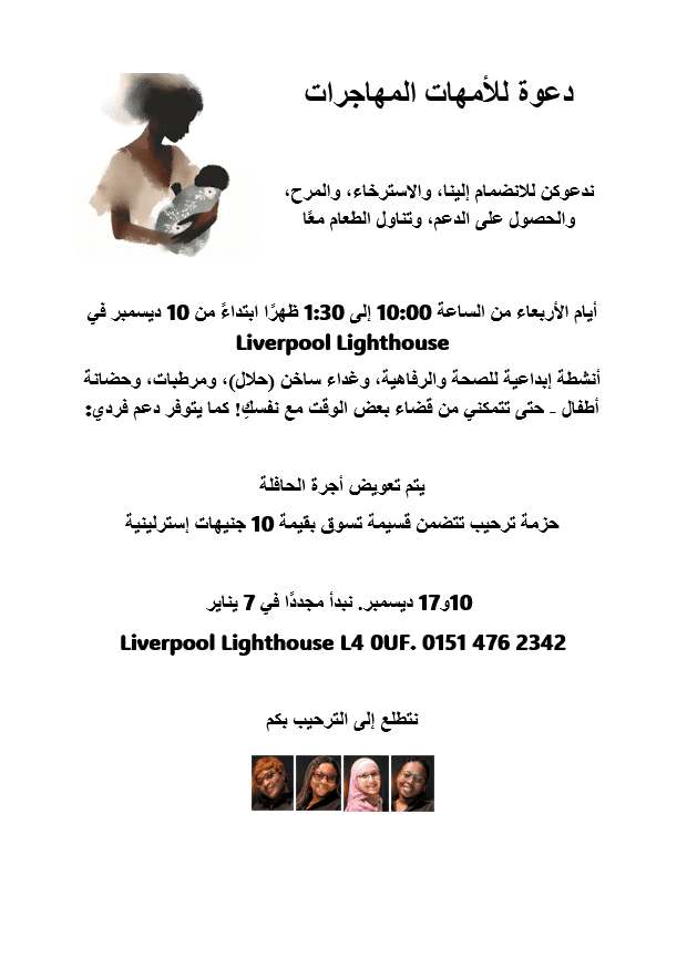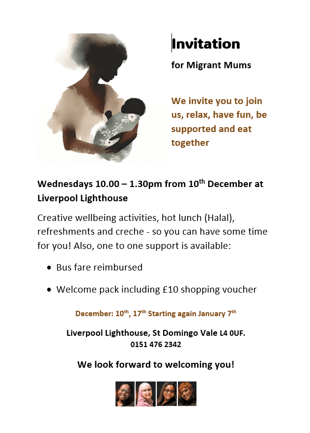 Starting Wednesday, 10th December, we are excited to welcome migrant mums to a special weekly gathering at Liverpool Lighthouse. This is a safe and supportive space where you can relax, connect with others, and enjoy creative wellbeing activities.
